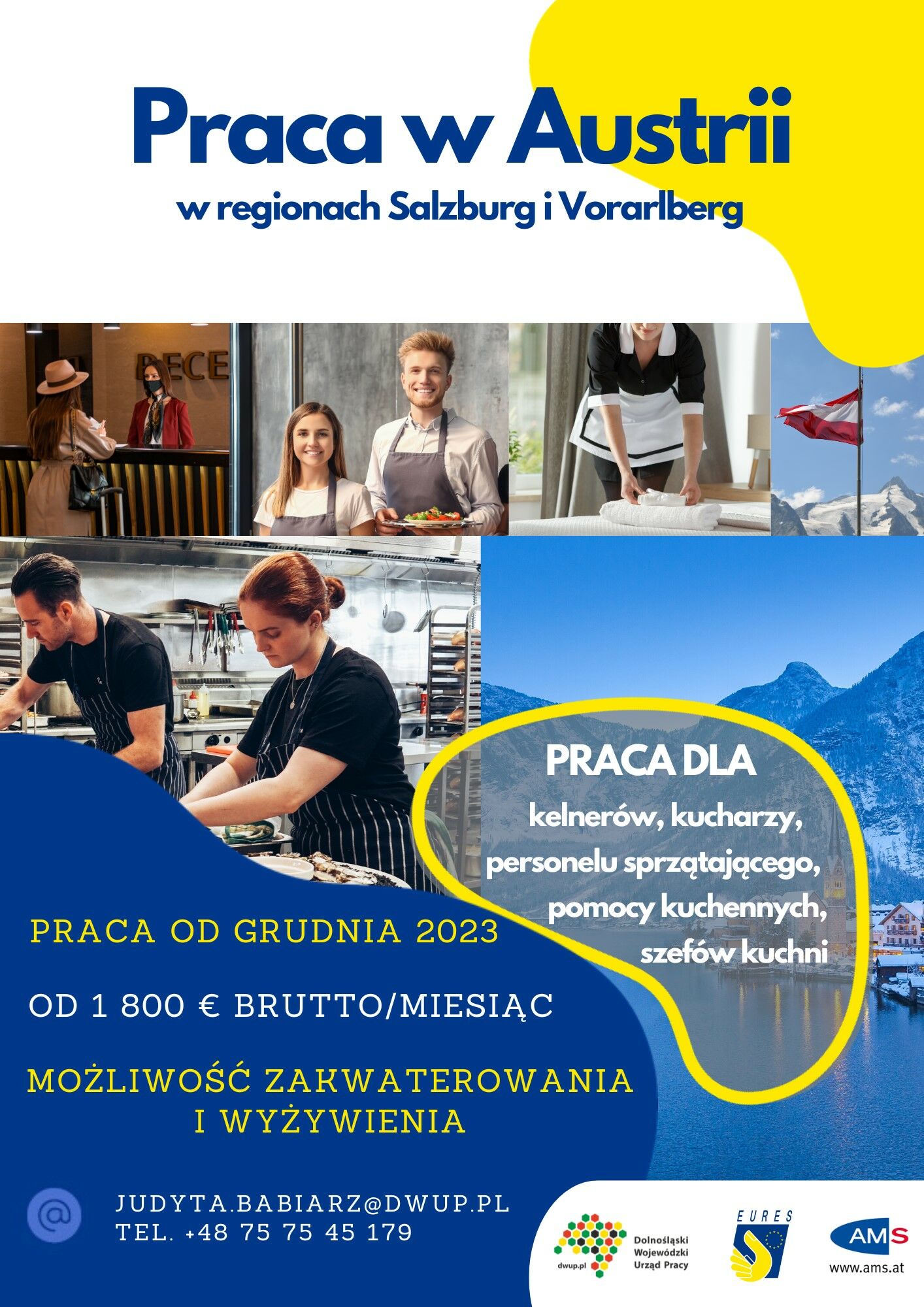 Zarejestrowane w sieci EURES austriackie firmy, hotele i restauracje oferują: