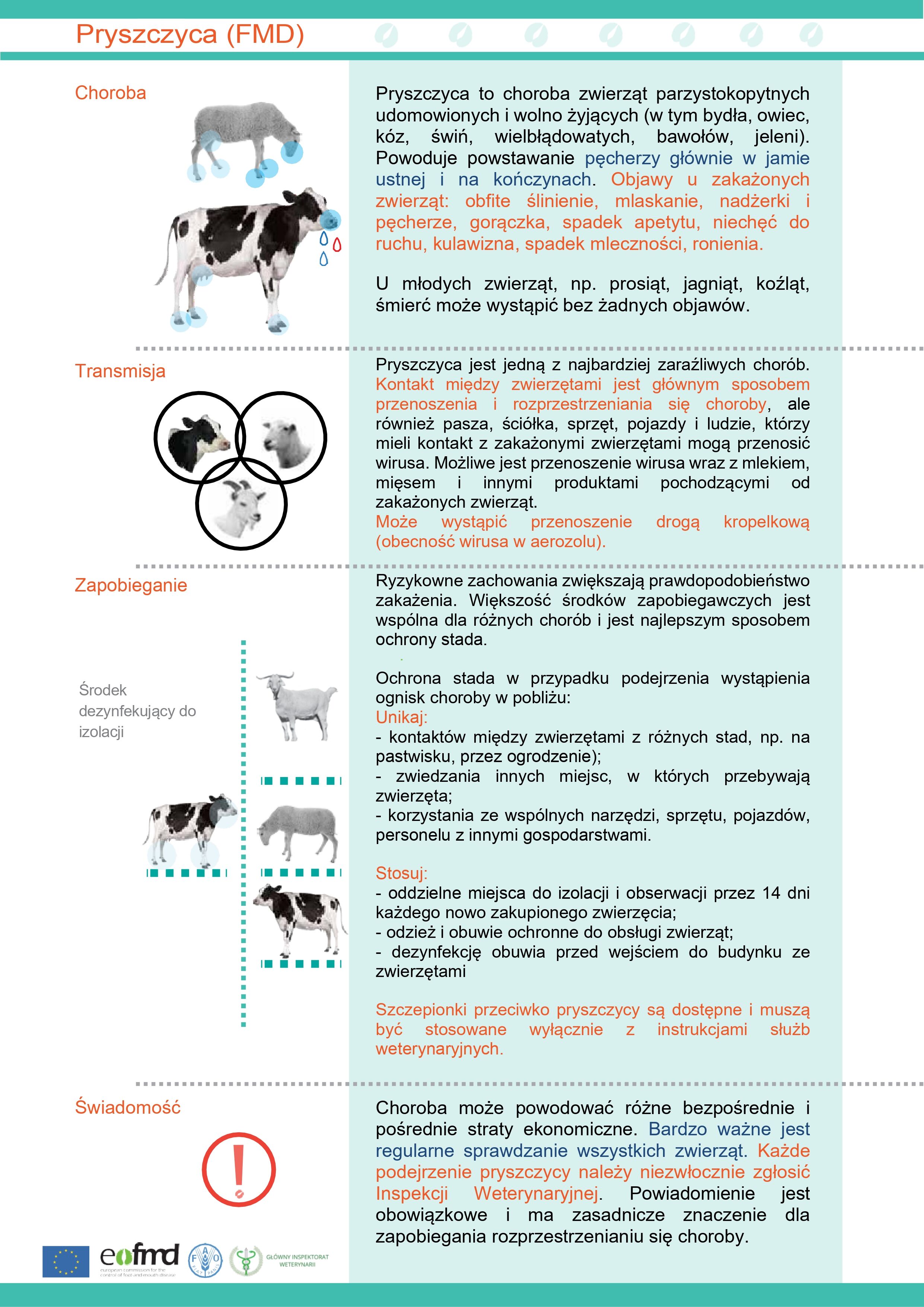 Każde podejrzenie pryszczycy należy niezwłocznie zgłosić Inspekcji Weterynaryjnej.