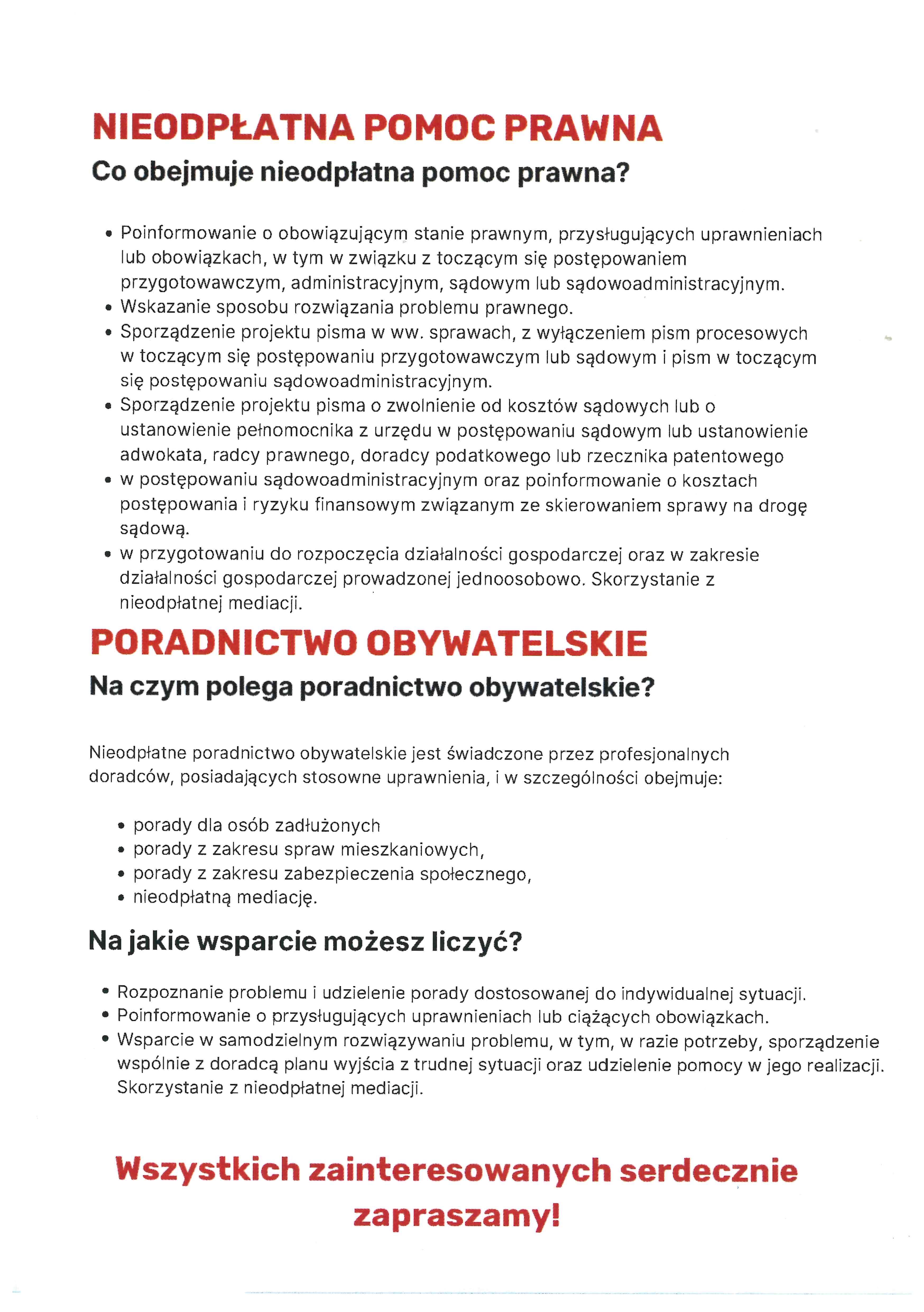 Przekazujemy informacje związane z nieopłatną pomocą prawną, nieopłatnym poradnictwem obywatelskim oraz nieodpłatną mediacją na terenie powiatu kutnowskiego w 2025 roku