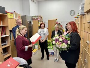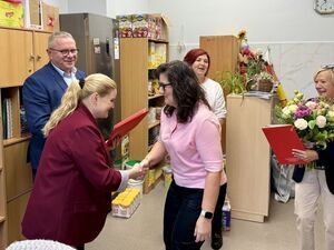 Podczas każdego ze spotkań Pani Burmistrz i Zastępca Burmistrza składali na ręce dyrektorów i grona pedagogicznego najserdeczniejsze życzenia zdrowia, osobistego szczęścia, satysfakcji z pracy zawodowej oraz nieustającej energii i pasji w kształtowaniu przyszłych pokoleń. Życzeniom towarzyszyły symboliczne kwiaty oraz drobne upominki.